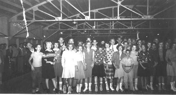 A group of unidentified skaters pose for a photo inside Skateland roller rink on Midland Boulevard, probably sometime in the 1950s. Don and Laura Jarrell (Mom and Pop Jarrell) moved to Fort Smith in 1945, and bought the Midland rink in 1946. Their sons, Jack Jarrell, and Al Mechling, helped them run Skateland on Midland. It thrived until 1959, when it was demolished when the Jarrells retired. |