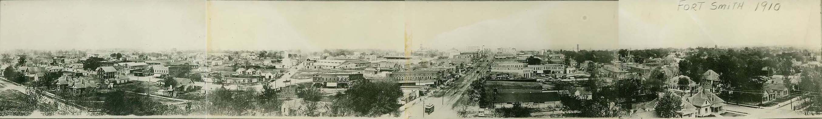 This panoramic photo probably was taken from the top of the Goldman Hotel in 1910 after it was framed out, but before its construction was completed. Notice the buildings at Texas Corner where the downtown post office is today and the buildings across Towson Avenue from them where the Friedman-Mincer was built just a few years after this photo was taken. Like the 1922 panorama, the image seen here is a composite of four photos. |