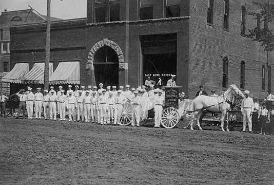 Members of the Fort Smith Typographical Union No. 249 stand in front of the offices of the Southwest American, left, and the Daily News Record on Rogers Avenue sometime between 1907 and 1909. They may have been getting ready for a Labor Day parade on Garrison Avenue. The News Record became the Fort Smith Times Record when it merged with the Fort Smith Times in 1909. |